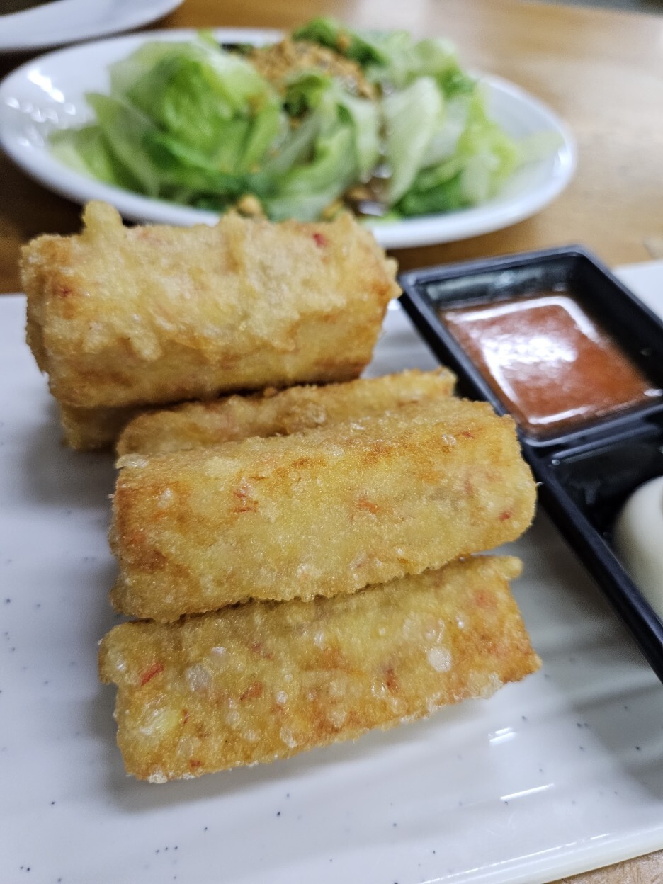 요것이 또 요물이다. 상당히 괜찮다. 그냥 일반적인 어묵 튀김인데, 약간 다른 맛이 있다. 튀김옷도 바삭하여 애피타이저로 역할이 좋다.