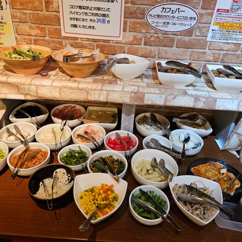 350엔을 추가하면 다양한 샐러드와 추가 요리들과 커피를 뷔페 형식으로 먹을 수 있다. 난 뷔페보다는 맥주를 선택했다.