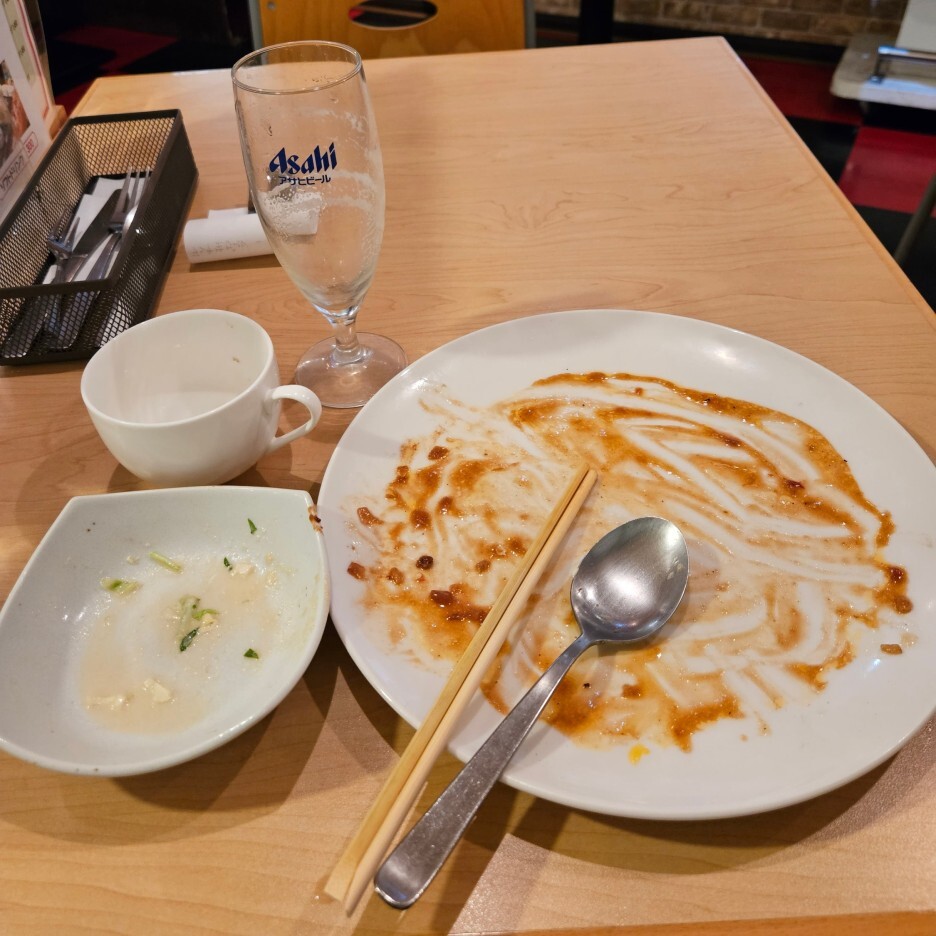 얼마 남지 않은 함박. 이때 후회가 되었다. 하프 함박이 아니라 온전한 함박을 먹었어야 했었다는... 이 함박만 먹으러만 오카야마를 방문할 수 있을 정도로, 아직도 내 혀에는 그 맛이 각인되어 있다.