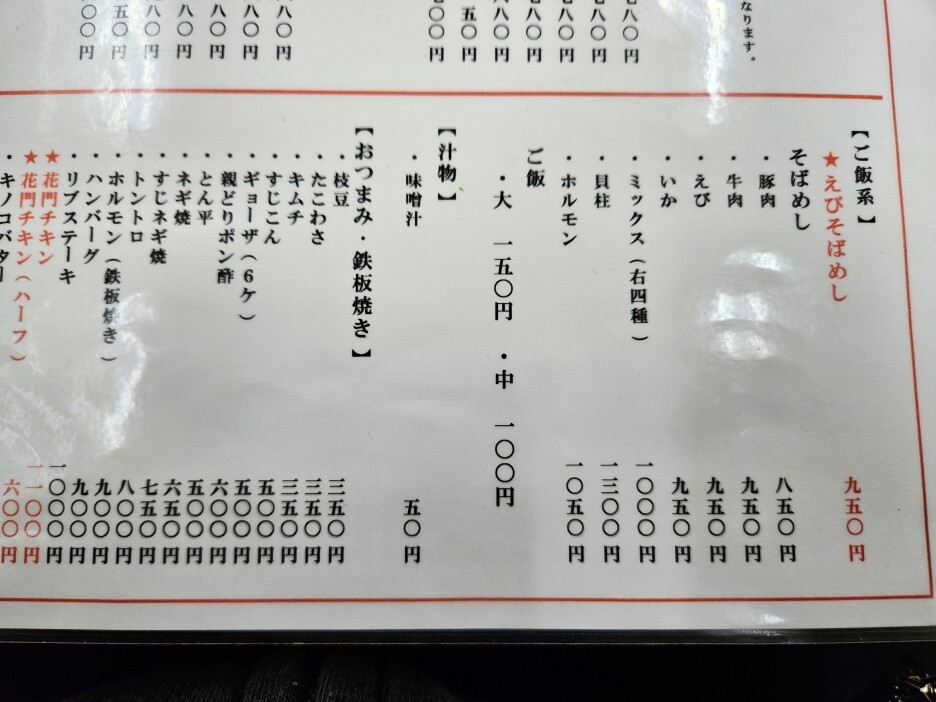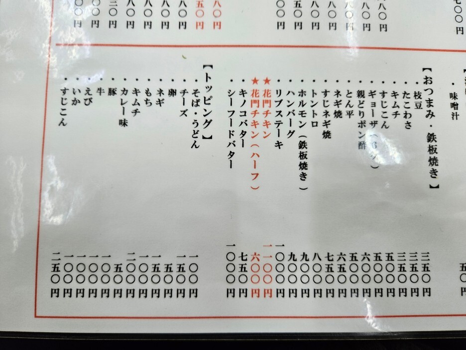 구글 리뷰에 호르몬 야키소바가 맛있다는 이야기를 보게 되니 갑자기 확 당겼다. 오코노미야키는 먹었지만 야키소바는 아직 이번 여행에서 먹지 않았었기 때문에. 또한 이 가게 이름을 딴 메뉴로 카몬 치킨을 이 집에서 밀고 있는 듯. 하프 사이즈가 있다. 카몬 치킨은 굽네치킨 같은 모습으로 양념구이라 생각 되었다. 그래 그럼 오늘은 호르몬 야키소바와 카몬치킨 히프다.