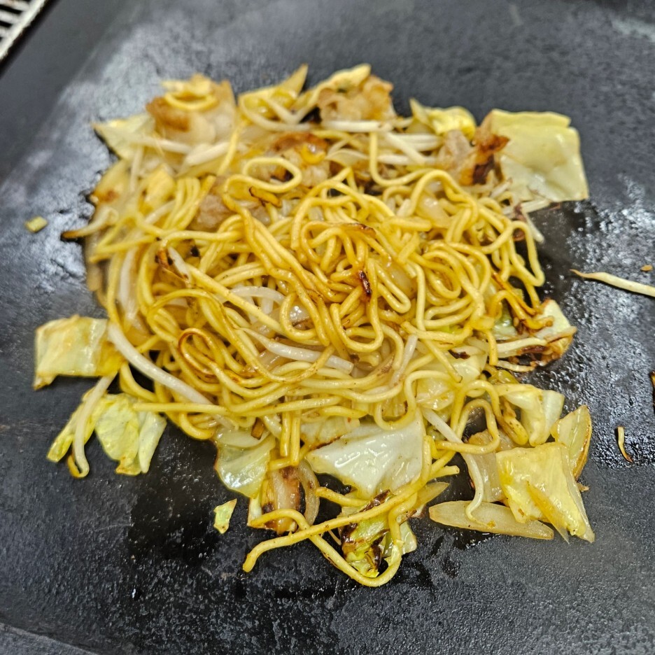 남은 호르몬 야키소바는 철판에 구워지면서 바삭한 식감이 된다. 철판에서 계속 데워지면서 살짝더 구워지다 보니 기름에 튀겨진 누룽지 같은 느낌으로 더 맛있게 먹었다.