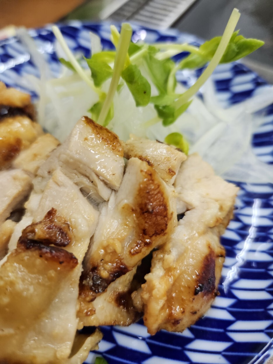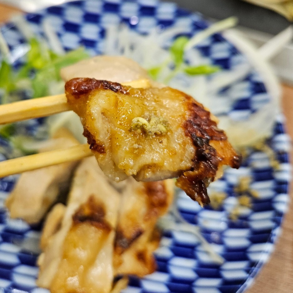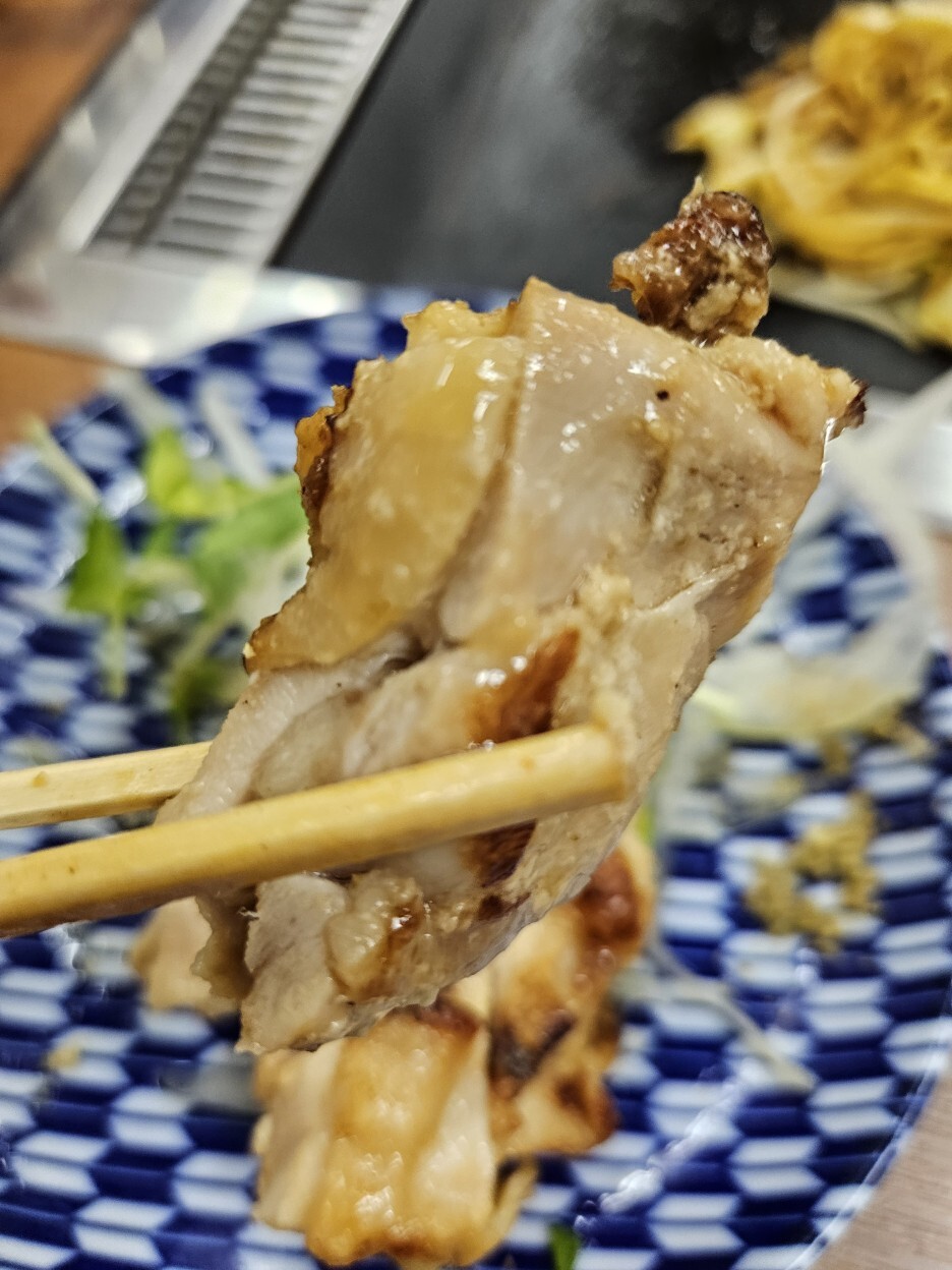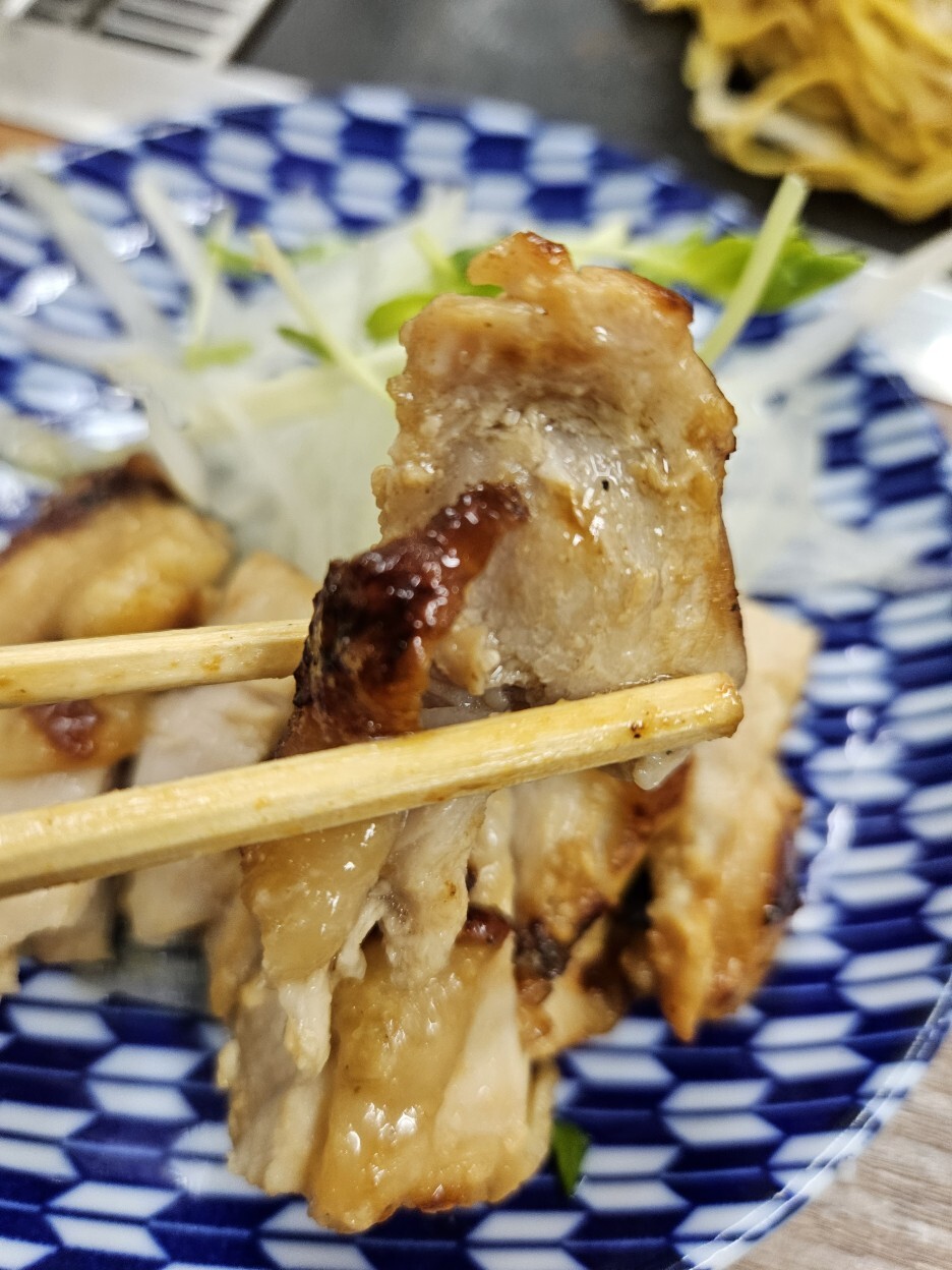 허벅다리살로 보이고, 윤기가 흐른다. 굽네치킨의 고급버전이다. 경주힐튼 라운지의 해피아워에 늘 나오는 내가 좋아하는 닭요리와 유사하다. 일본은 대다수의 닭요리가 뼈가 없이 나온다. 보통 한국에서는 순살보다는 뼈가 있는 닭고기가 훨씬 맛있는데 일본은 뼈가 없어도 대충다 맛있다.