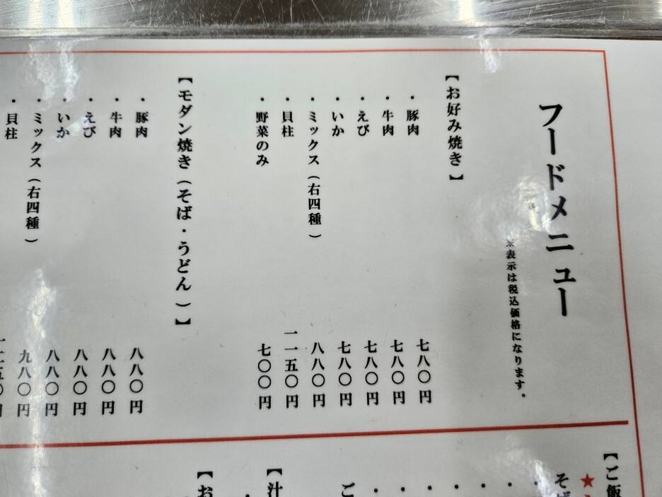 오코노미야키 780엔~1150엔