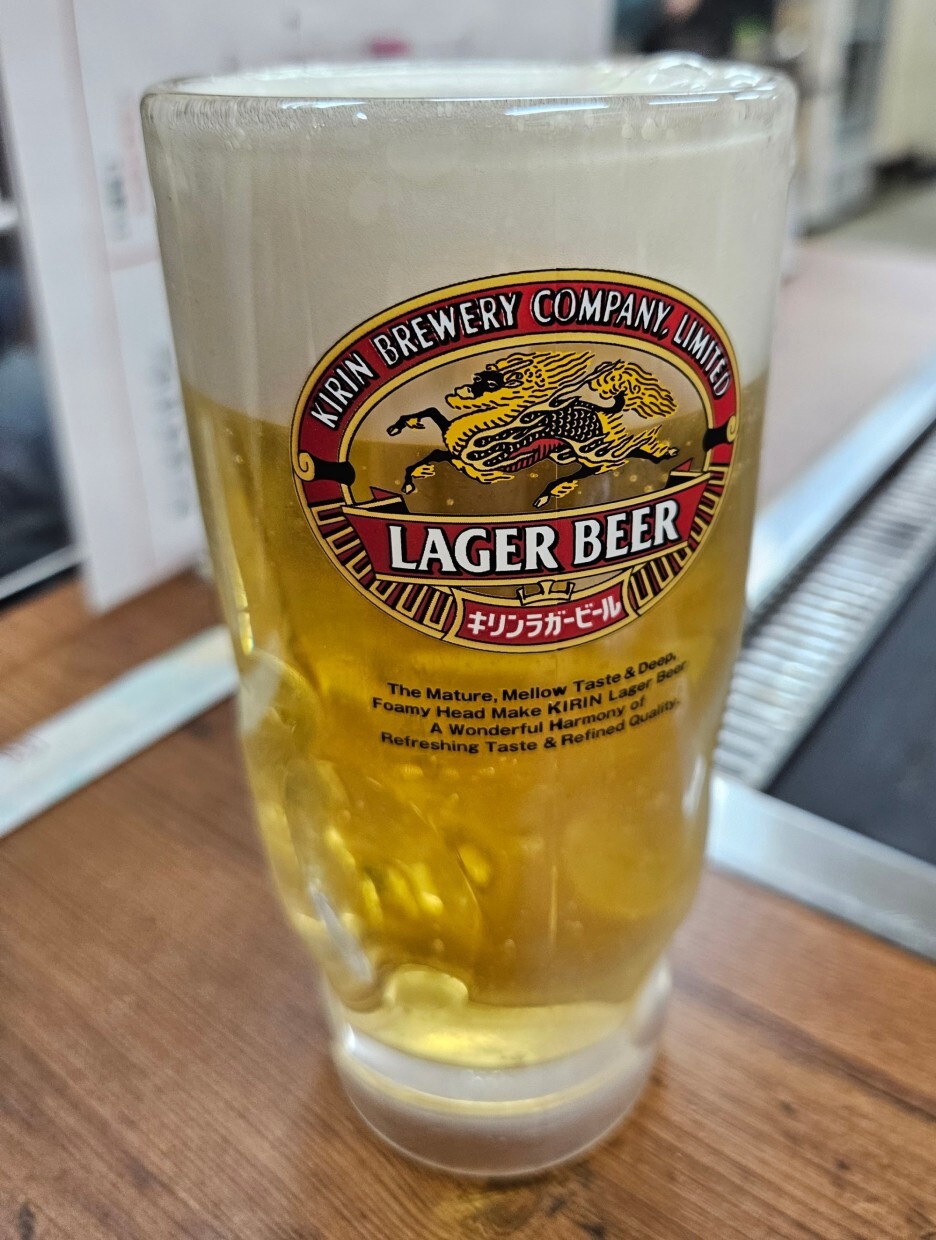 먼저 빠질 수 없는 생맥주 한 잔. 기린 이치방시보리.