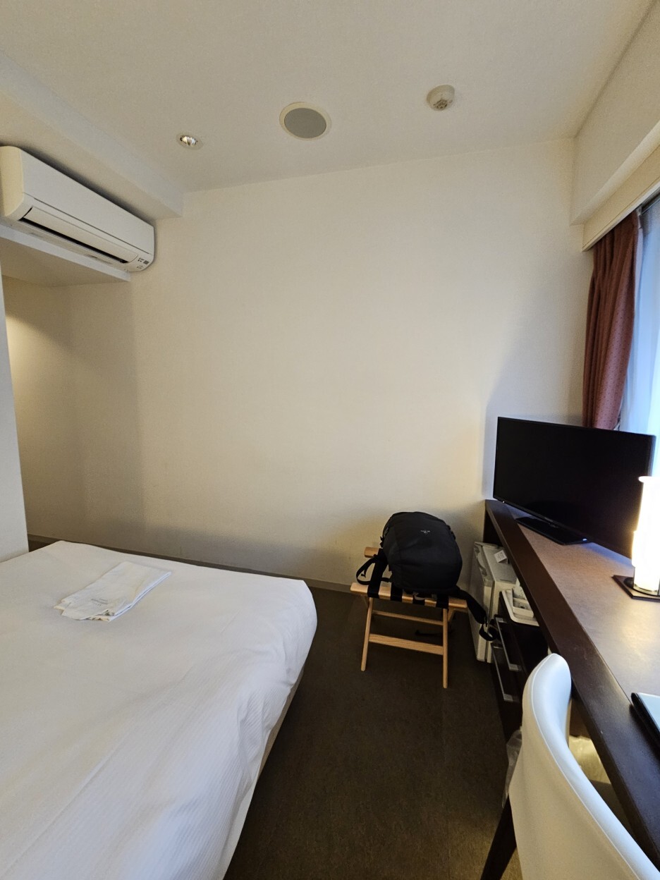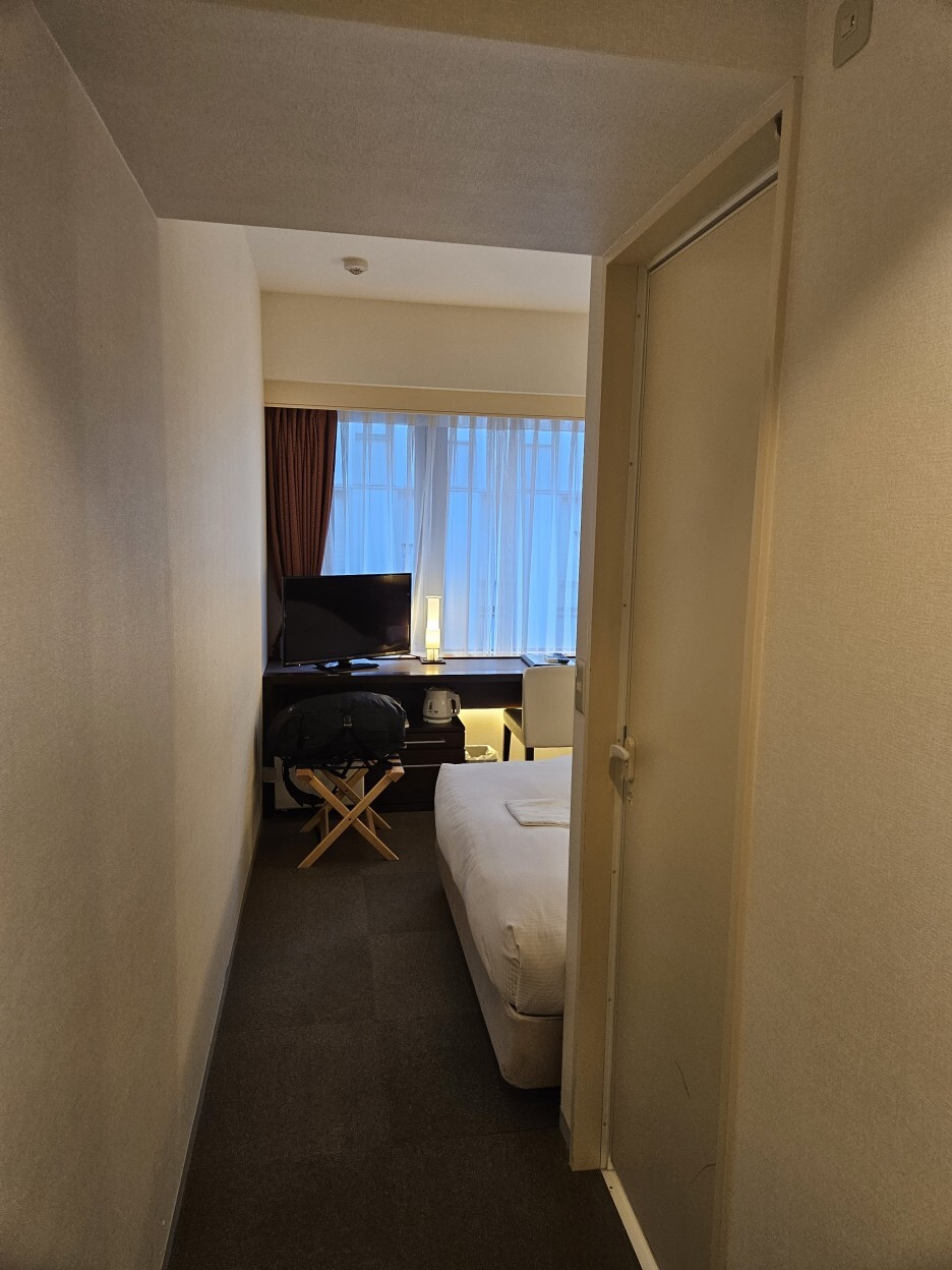 첫 느낌은 전형적인 일본의 좁은 호텔이구나 싶었다. 문 바로 뒤쪽에는 추가 베개와 옷장이 있다. 이렇게 옷장이 있는 것이 편하다는 것을 이번 여행에서 알게 되었다. 그리고 일본 호텔 필수품 섬유탈취제와 공기청정기.