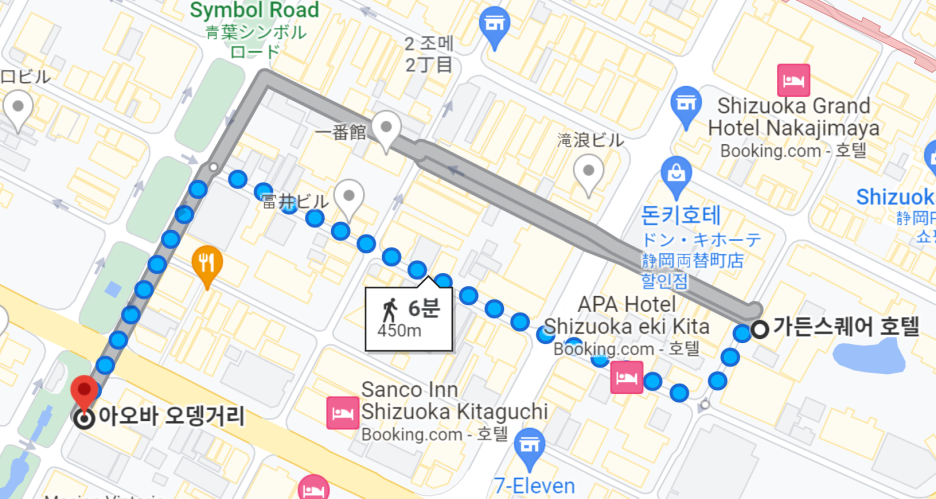 또한 시즈오카에 가면 다들 한 번씩 가게 되는 아오바 오뎅거리도 걸어서 6분이면 갈 수 있다.