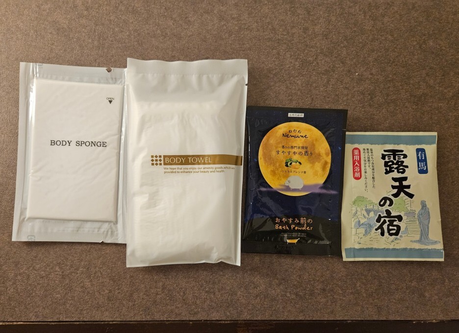 추가 어메니티는 프런트 쪽에 배치되어 있다. 나는 샤워를 위해 보디 타월과 보디 스펀지를 가져왔다. 그리고 입욕제도 있길래 2개 골라 왔다. 취침 전의 욕조에서 잘 사용했다. 많이 걸어 다니다 보니, 욕조에 몸을 담그는 일이 많았는데, 이번에는 아주 향기로운 목욕을 할 수 있었다.