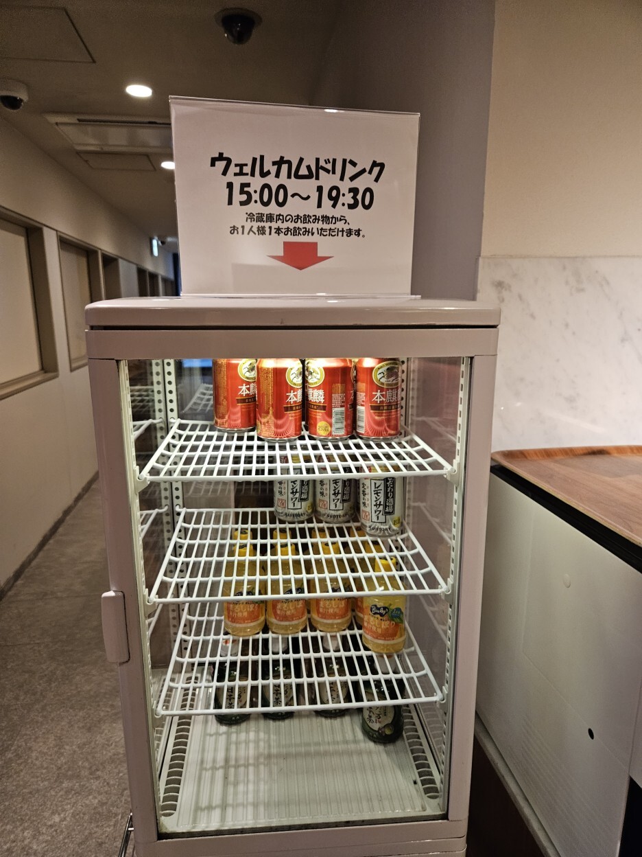 웰컴 드링크는 오후 3시부터 오후 7시 30분까지 제공이 된다. 그런데 눈에 보이는 것은 그냥 냉장고에 들어가 있는 캔.