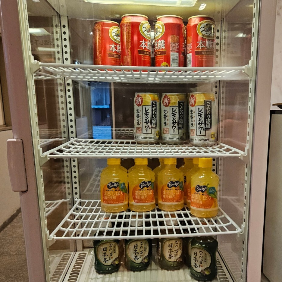가까이 가서 보니, 헐~ 맥주와 레몬사와 같은 주류가 있었다. 그리고, 오렌지 주스와 녹차 페트병. 일단 나는 자발적으로 잘 사지 않는 레몬사와를 하나 골랐다. 1인당 1개라고 적혀 있긴 하지만, 관리를 하거나 하지 않기 때문에 본인의 양심에 맞춰서 드시면 되겠다.