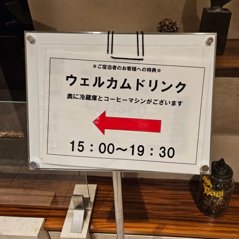 호텔 가든 스퀘어 시즈오카에서 가장 인상 깊었던 것은, 후한 웰컴 드링크였다. 체크인을 할 때 식당 쪽으로 가면 웰컴 드링크가 준비되어 있으니 자유롭게 먹어도 된다고 해서, 음료 머신이 있겠지 싶었다.
