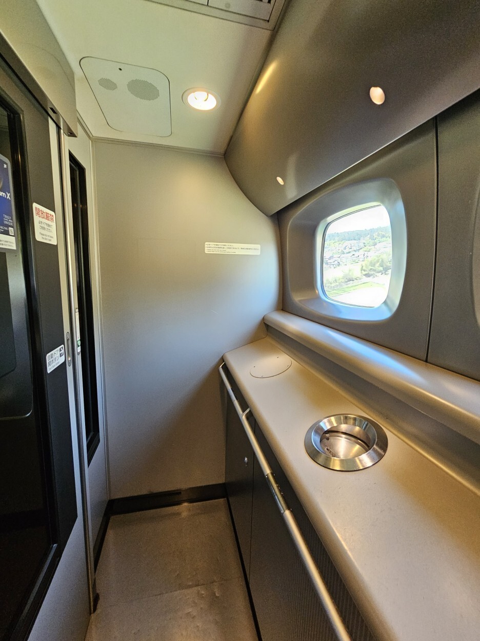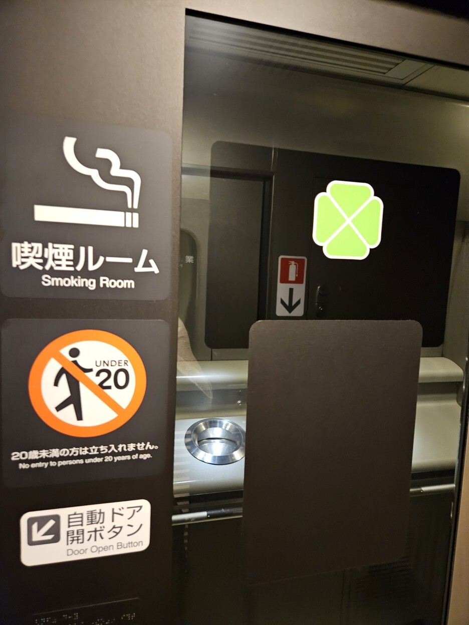 흡연자에게는 아주 유용한 신칸센 흡연실. 여행중 다양한 신칸센을 탔지만, 신칸센 히라키에서만 흡연실을 볼 수 있었다. 신형 객차의 신칸센에서는 한번도 흡연실을 보지 못했다. 아마도 요즘은 흡연실을 없애는 상황인듯.