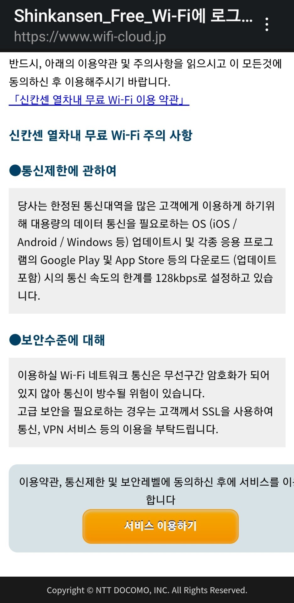 서비스 이용하기 버튼을 터치하면 된다.