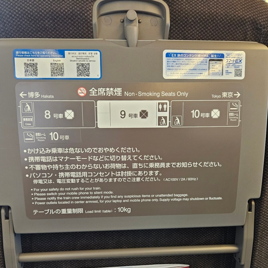 차량들의 안내도 잘 되어 있다. 신칸센 히카리는 8, 9, 10호차가 모두 그린샤이다. 10호차에는 흡연실도 있다.