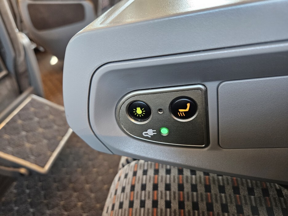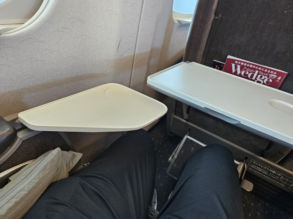좌석간 거리가 넓다 보니, 앞쪽 탁자는 몸쪽으로 당겨서 위치 시킬수가 있다.