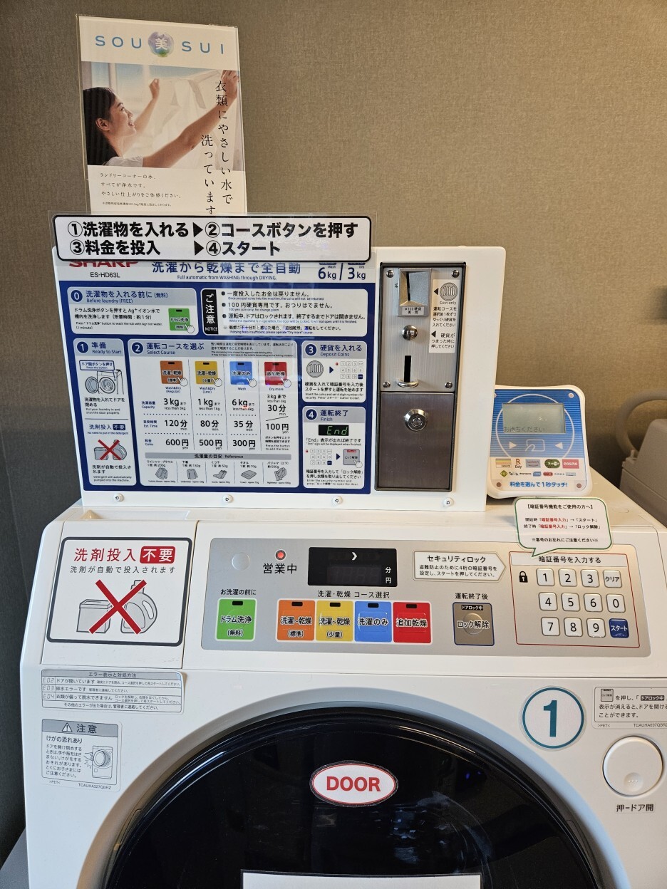 가격은 빨래와 건조까지는 600엔이다. 살짝 높은 가격대.
