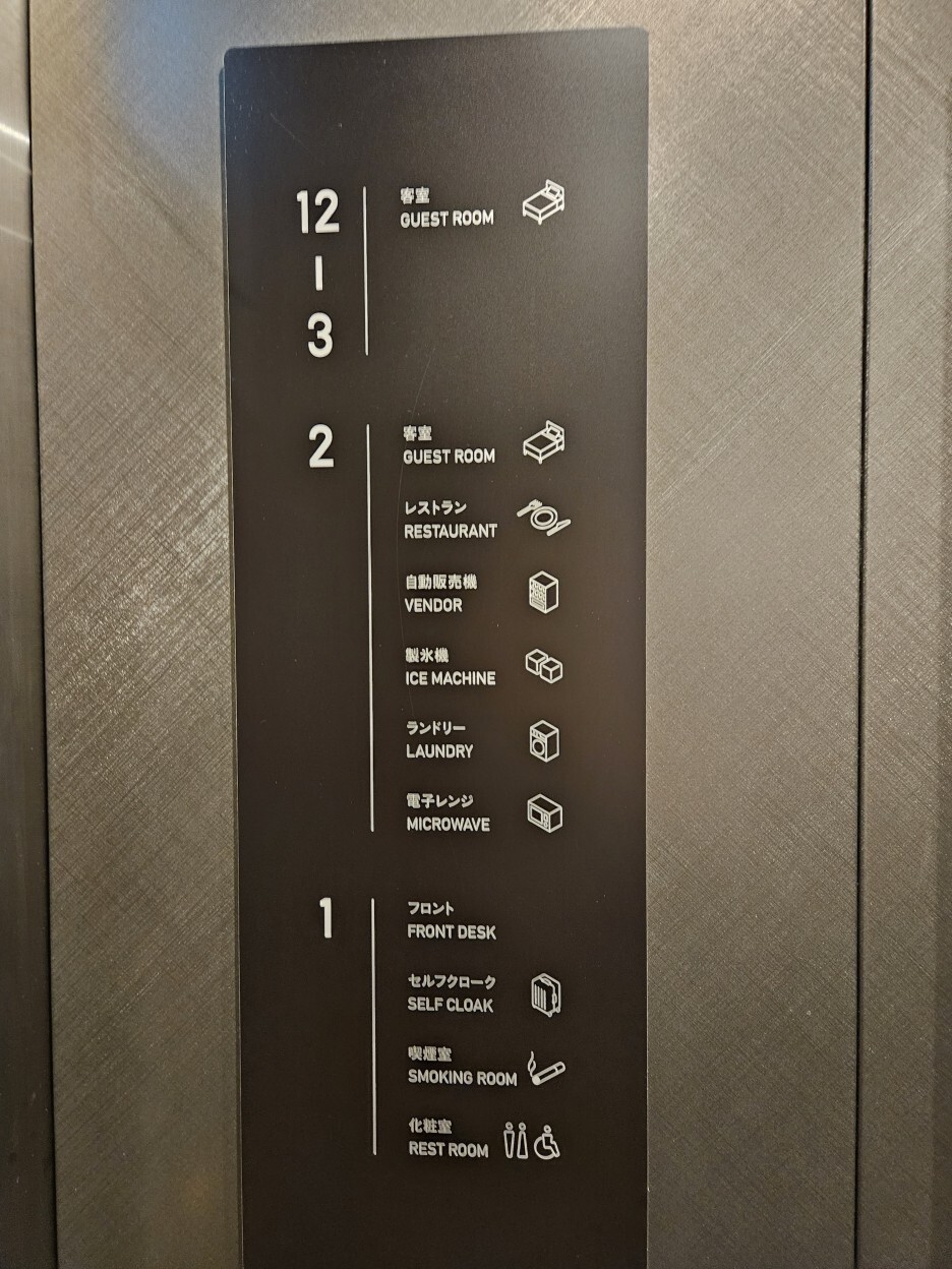 간단한 층별 안내. 특별한 시설은 없다. 2층에 있는 조식당, 아이스 메이커 제빙기, 자판기, 코인세탁기 정도가 전부이다.